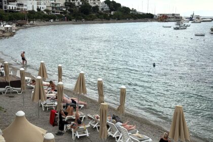 Bodrum’da sağanağa rağmen turistler denize girdi