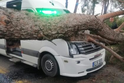 Seyir halindeki minibüsün üstüne ağaç devrildi