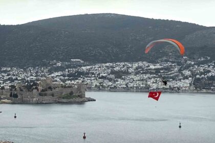 Bodrum semalarında 18 mart mesajı: Dev Türk bayrağıyla anlamlı uçuş