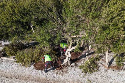 Menteşe Belediyesi ekipleri, Akbük Plajı’nda devrilen sakız ağacını, dokusuna zarar vermeden yeniden…