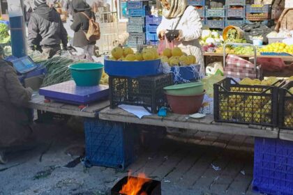 Soğuk pazara vurdu, pazarcılar çareyi ateş yakmakta buldu
