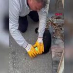 Fırat AKAY/BODRUM (Muğla), (DHA)- MUĞLA’nın Bodrum ilçesinde, başı konserve kutusuna sıkışan kediyi, belediye temizlik personeli kurtardı. O anlar cep telefonuyla görüntülendi.