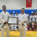 Cavit AKGÜN / MUĞLA, (DHA)- MUĞLA Cumhuriyet Başsavcısı Oğuzhan Dönmez, 30 yıl önce başladığı karate yolculuğunda siyah kuşak diploması sahibi oldu. 1990’lı yıllarda karate yapan ve spora uzun yıllar ara veren Başsavcı Oğuzhan Dönmez, 2025 yılında oğlu Bilgehan ile yeniden Tatami’ye dönerek siyah kuşak ünvanını elde etti. 1991-1995 yılları arasında aktif olarak karate yapan Dönmez, üniversite döneminde spora ara verdi. 2025 yılında oğlu Bilgehan ile birlikte yeniden antrenmanlara başlayan Dönmez, yoğun çalışmalarının ardından siyah kuşak diplomasını almaya hak kazandı. Başsavcı Dönmez’e siyah kuşak diplomasını Karate Milli Takım Antrenörü Kadir Yılmaz verdi.