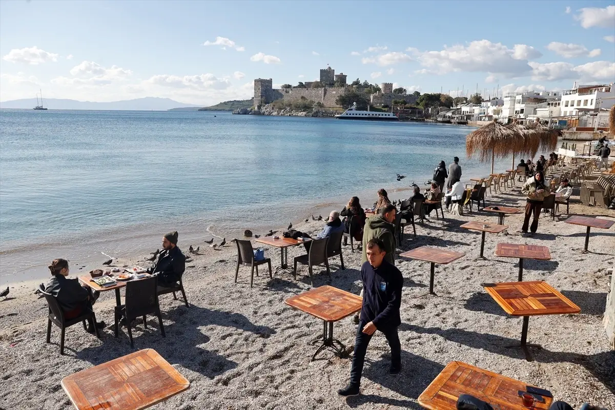 Muğla'nın Bodrum ilçesinde, yeni yılın ilk gününde güneşli havayı değerlendiren vatandaşlar ve…