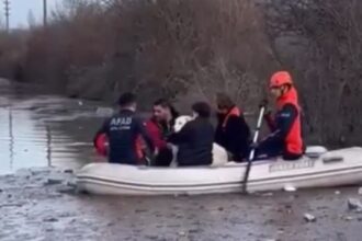 Muğla’nın Menteşe ilçesinde dere yatağında mahsur kalan 5 kişi ile bir köpek,…