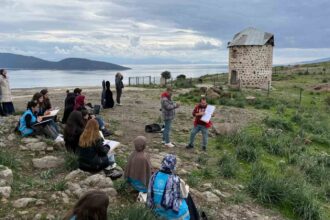 Datça’da yapımı süren okulun duvarları Badem Çiçeği Festivali’ne hazırlandı