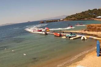 Fırat AKAY/BODRUM (Muğla), (DHA)- MUĞLA'nın Bodrum ilçesinde sürat teknesi tarafından çekilen deniz…
