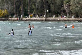 Muğla’nın Akyaka Mahallesi’nde 16 derecelik havaya aldırmayan bazı vatandaşlar denize girerken, sahildeki…