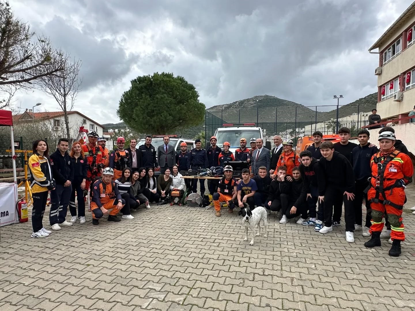 Muğla’nın Datça ilçesinde Şehit Ersoy Yorulmaz Anadolu Lisesi’nde deprem tahliye tatbikatı gerçekleştirildi.