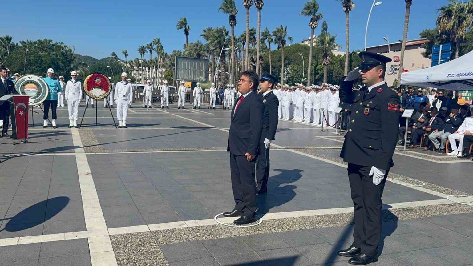 Marmaris Atatürk Meydanı’nda sabah 10.30’da başlayan programda, Atatürk Anıtı’na çelenk sunuldu. Marmaris Kaymakamı Nurullah Kaya, Marmaris Muharip Gaziler Derneği Temsilcisi Azmi Özkan, Aksaz Deniz Üs Komutanı Tuğamiral Hamdi Abanoz ve Marmaris Belediyesi Başkan Vekili Osman Demirtaş çelenk sundu.