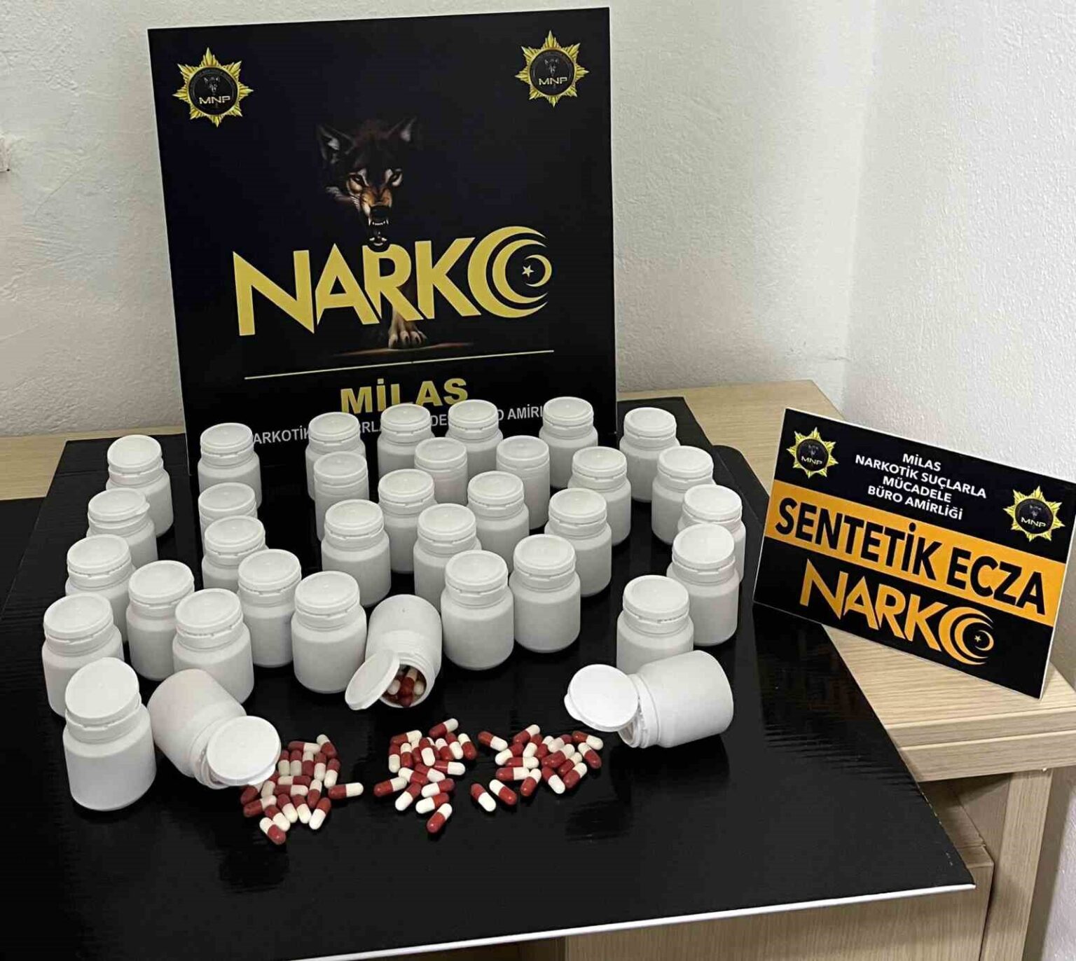 Muğla İl Emniyet Müdürlüğü ekiplerince Milas ilçesinde düzenlenen uyuşturucu operasyonunda bin 814 adet sentetik ecza ele geçirilirken, 3 şüpheli tutuklandı.
