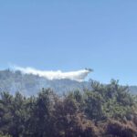 Muğla’nın Köyceğiz ilçesinde çıkan orman yangınını söndürme çalışmaları havadan ve karadan sürerken, yanan alanlar dronla görüntülendi. Görüntülerde, geniş bir alanın küle döndüğü, bazı bölgelerden ise dumanların yükselmeye devam ettiği görüldü. (DHA)