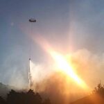 Gece boyunca 506 personel ve 166 araçla karadan müdahale edilen yangına, havanın aydınlamasıyla 10 uçak ve 14 helikopter de destek oldu. Akköprü, Sazak ile Pınar mahallelerinde 218 ev boşaltılırken, 582 kişi güvenli bölgelere tahliye edildi. 997 küçükbaş ve 582 büyükbaşın tahliyesi tamamlandı. 2 depo ve 2 ahır yangından etkilendi, 10 küçükbaş öldü. Eğitime ise 1 gün ara verildi.