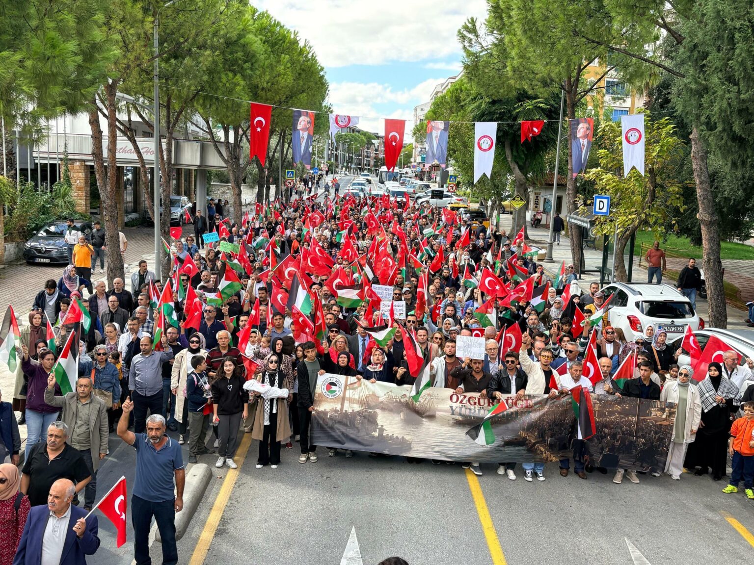 Aziz ŞAHİN / MUĞLA, (DHA) -MUĞLA’nın Menteşe ilçesinde yüzlerce kişi, Filistin’in özgürlüğü ve Küresel Sumud Filosu’na destek amacıyla yürüyüş gerçekleştirdi.
