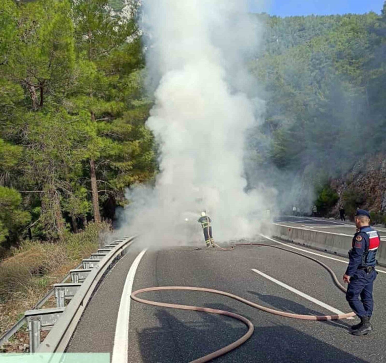 Olay yerine Büyükşehir İtfaiye, polis, jandarma ve 112 ambulans ekipleri sevk edildi. Kamyonun alev alev yanması sonrası yol ulaşıma kapandı. İtfaiye ekipleri yanan araca müdahale etti. Kısa süreli ulaşıma kapanan yol trafik ekiplerinin güvenlik önlemi almasının ardından tekrar ulaşıma açıldı.