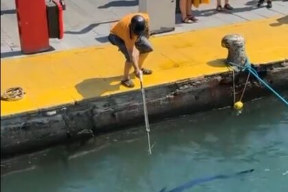 Nesli tehlike altındaki balığı limanda zıpkınla vurdular