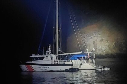 Muğla’nın Fethiye ilçesi açıklarında İtalya rotası üzerinde seyir halinde olan yelkenli teknede…