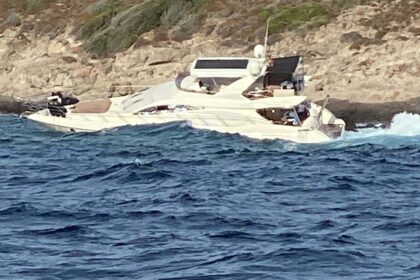 Bodrum’da sürüklenen motoryat, kayalıklara çarptı