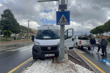 Muğla’nın Menteşe ilçesinde sürücüsünün direksiyon hakimiyetini kaybettiği minibüs, orta refüje çıkarak elektrik…