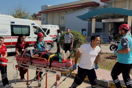 Fethiye Devlet Hastanesi bahçesinde düzenlenen afet ve acil durum tatbikatı, gerçek bir…